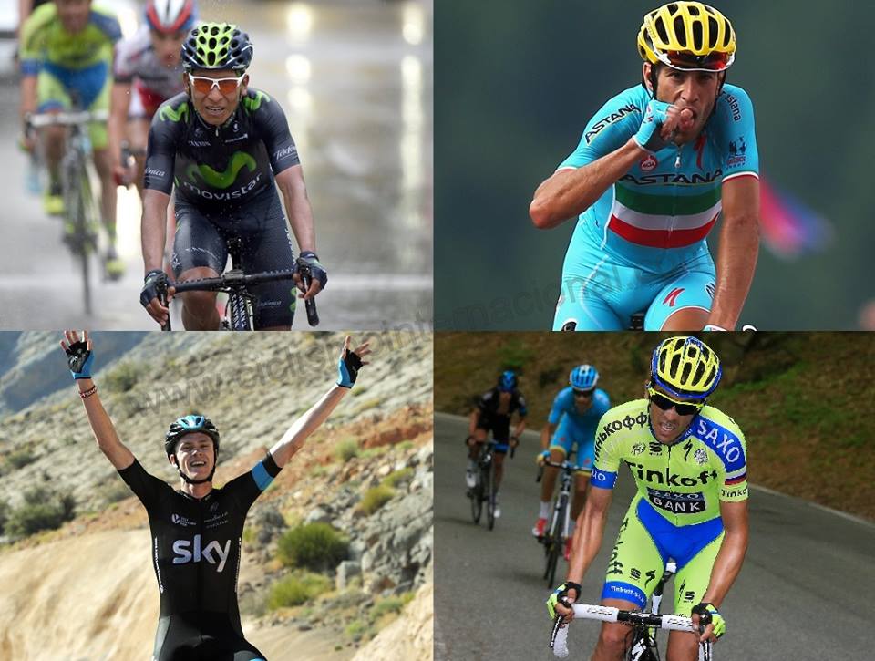 –Quintana: el de más talento natural para subir. Se dio el lujo de cortar a Froome y Contador en el Tour de 2013, pero también padeció en carne propia dicha situación, a manos de Froome en ese mismo evento, mientras que Contador lo relegó en Tirreno Adriático y la Vuelta a España de 2014. En la más reciente edición de la Carrera de los Dos Mares, se exhibió en el Terminillo con el de Pinto presente, pero no ha competido mucho más y, cuando lo hizo, no mostró la superioridad abrumadora a la que nos tiene habituados. Llega fresco y tiene con qué romper desde lejos en la montaña. Si le sueltan la soga y está en su nivel, puede hacer mucho daño.