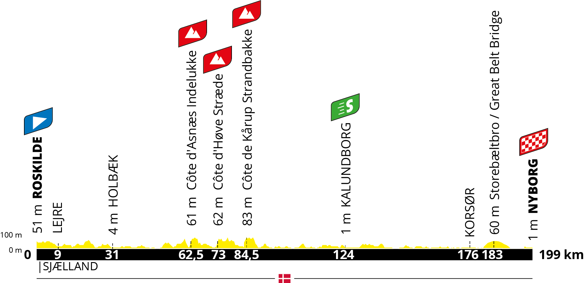 Se trata de tramos relativamente planos, como no podía ser de otro modo en Dinamarca, con un arranque sobre la cabra en una breve contrarreloj individual por las calles de Copenague. Al día siguiente aguarda un camino un poco más ondulado y expuesto al viento.