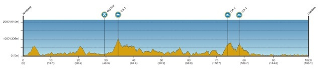 El miércoles saldrán desde Monterey, uniéndose con Cambria tras 165 kilómetros. La jornada presenta 3 puertos de 1ª categoría, aunque el último de ellos a 38 kilómetros de la meta. El primero de ellos, Big Sur, tiene una longitud de 3500 metros al 6%. La segunda ascensión será Ragged Point (3,5 kilómetros al 5%), mientras que la última dificultad es nuevamente Ragged Point, aunque subirán por otra ruta, una de 1900 metros con pendientes al 7%. El equipo del líder deberá estar atento y no otorgarle demasiada ventaja a la escapada si no quiere tener problemas. ¿Podrán hacerla buena a la fuga del día?