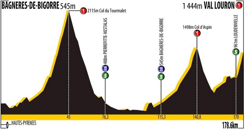 El segundo día se disputará en los Pirineos, en una etapa en que deberán ascender tres puertos de primera categoría, por lo que podría considerarse la etapa reina del evento. Partiendo desde Bagneres-de-Bigorre, los ciclistas coronarán en el kilómetro 45 el Tourmalet, para luego dar paso a 38 kilómetros de meta a Col d´Aspin. Desde allí, continuarán su camino hacia la última ascensión de la jornada, Val Louron, donde finalizarán el parcial del día tras 178 kilómetros. Seguramente aquí veremos alzar los brazos al vencedor final del evento.