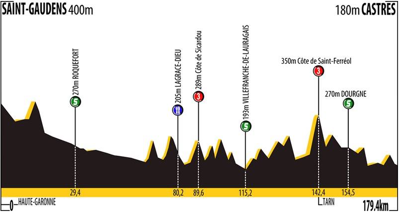 El domingo disputarán la tercera y última etapa, en un tramo de 179 kilómetros entre Saint-Gaudens y Castres, en un parcial que no se prevé que marque diferencias importantes entre los hombres que disputen la General. Las únicas dos cotas del día serán Cote de Sicardou (3° categoría) y Cote de Saint-Ferréol (3°), aunque la última de ellas a 37 kilómetros de meta, por lo que probablemente la etapa se defina al sprint.