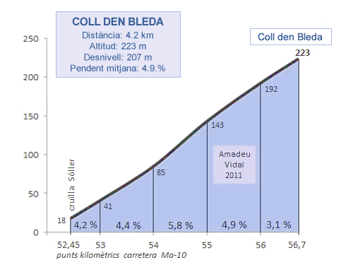 Luego vendrá un descenso de unos 15 kilómetros que da paso al Coll den Bleda (3°), última dificultad categorizada. Son 4.2 kilómetros al 5% donde los menos rápidos deberán probar suerte. Concluida la cota sólo restará el final, que pica hacia arriba pero ya sin la exigencia de las ascensiones del recorrido. Un cierre para corredores con buen golpe de riñón.