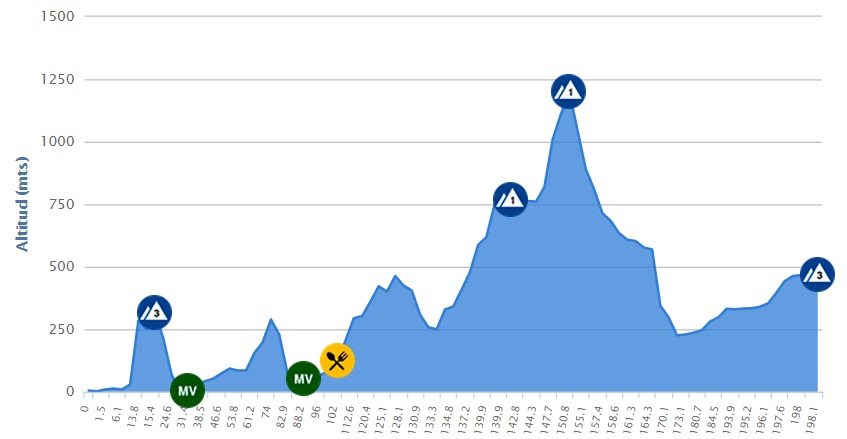 Los dos puertos de 1° categoría son difíciles: 9.4km al 5.5% y 6.5km al 6.7%. Tan temprano en la temporada, los pedalistas no rodarán al ritmo de las grandes vueltas pero igualmente sufrirán.